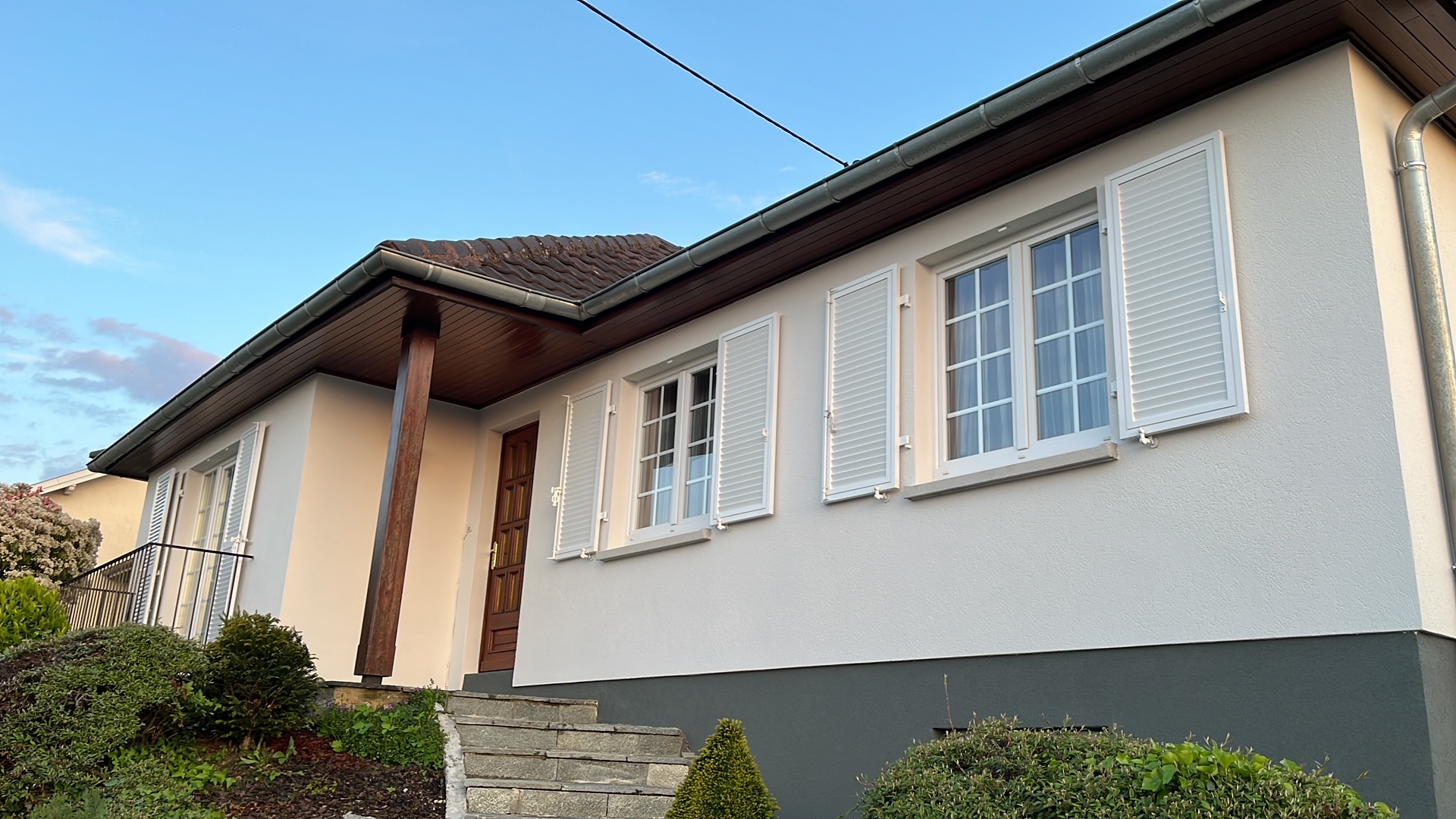 Isol paint, entreprise de ravalement de façade et isolation à Mulhouse, a réalisé une peinture minéralecomplète d’une maison à Rixheim près de Mulhouse.