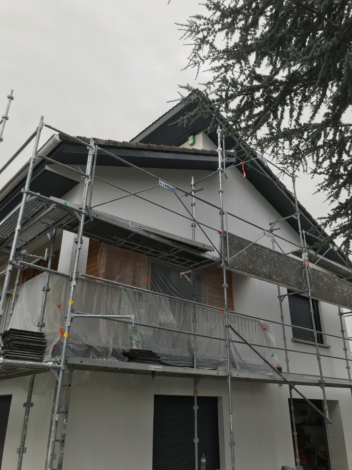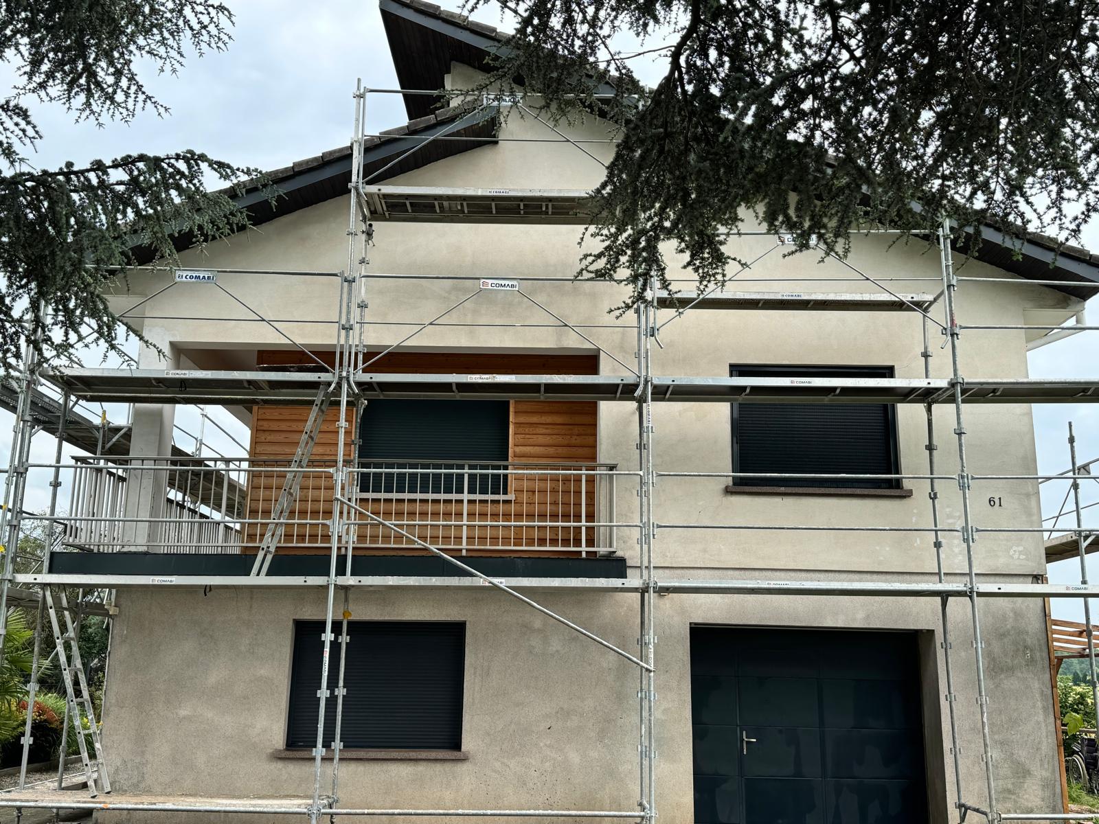 Pour le ravalement des façades, nous avons effectuer la pose de l’échafaudage,